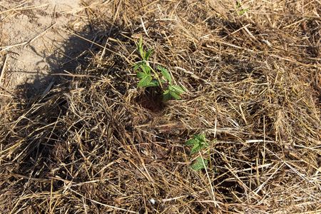 Hay/Straw (Fig 2) - Poor suitability as mulch for hops. It easily blows away and must be constantly reapplied. The decay process can also create mold and spread disease in a similar manner as grass clippings. If too much is applied, a hard cap can be created and produce the same problems as grass clippings.